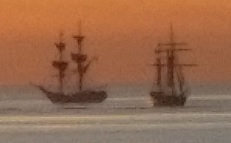 The Tall Ships are back in Ventura again and they have gone out on some battle sails. They were out at sea during the sailboat race on Saturday 1/28 and have been spotted offshore at other times.